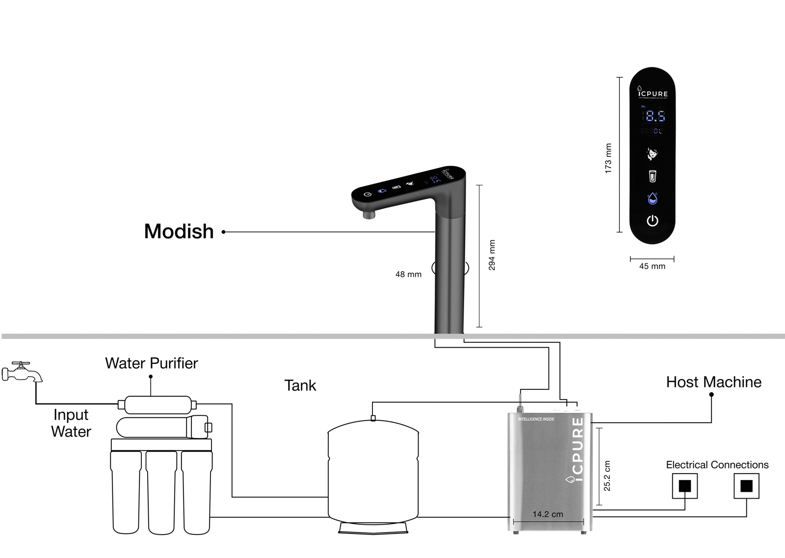 Ensures automatic cleaning of sintered plates at regular intervals, effectively preventing scale buildup and enhancing the overall durability of the system. This advanced self-cleaning mechanism helps maintain peak efficiency, extending the life of the machine while keeping water quality consistently high. Unlike most imported machines, it reduces manual intervention, saves time, and ensures consistent performance with minimal maintenance. By automating one of the most critical upkeep processes, it not only lowers service costs but also provides users with peace of mind, knowing the machine remains reliable, hygienic, and efficient without constant attention.