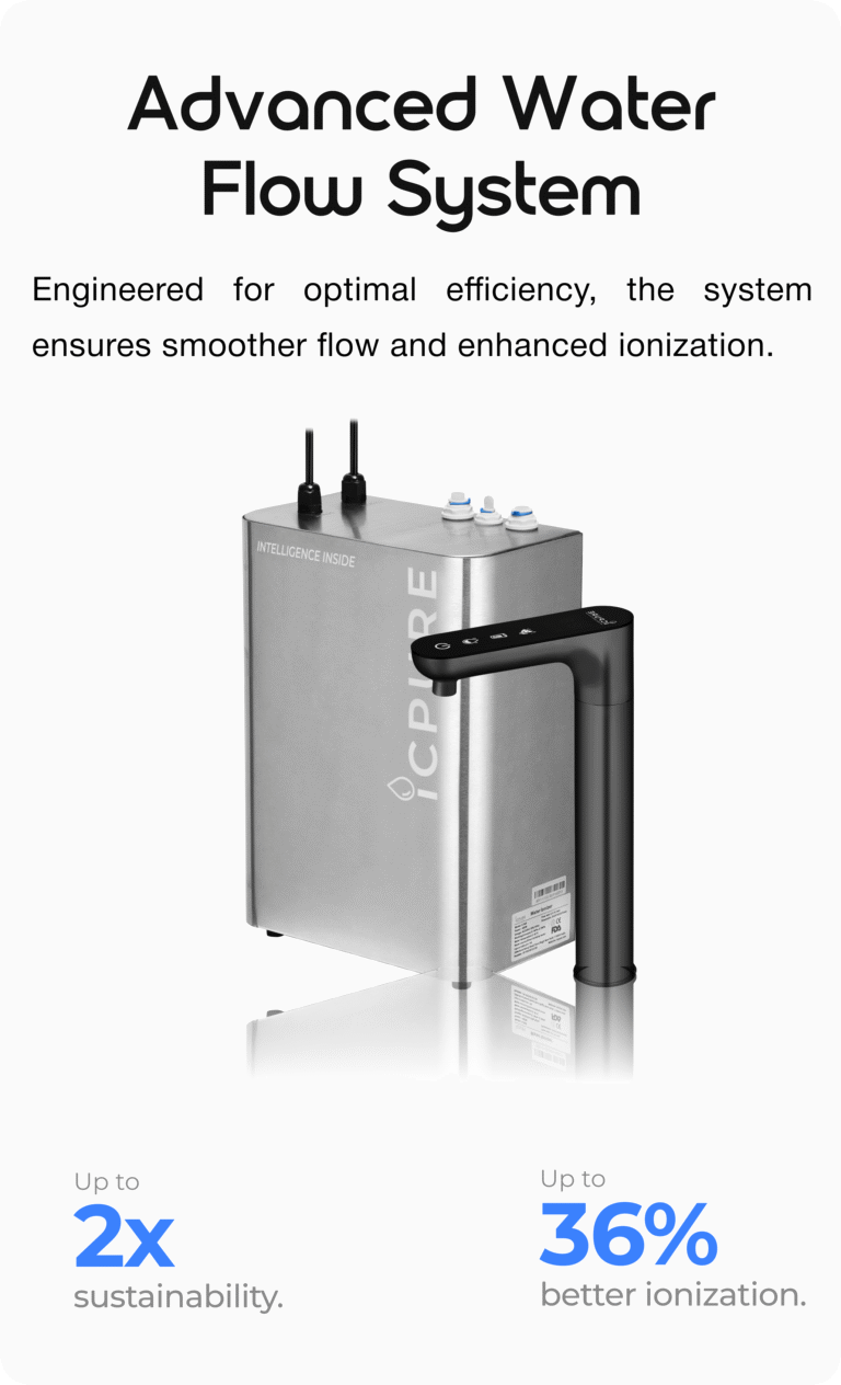 Optimized for smooth flow and higher ionization, achieving better hydration while saving resources.